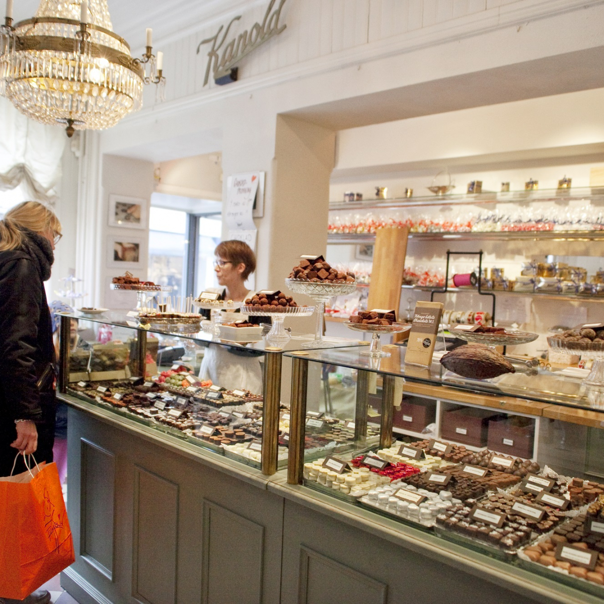 En gammaldags marknadshall med kött, ost, bröd och andra delikatesser.